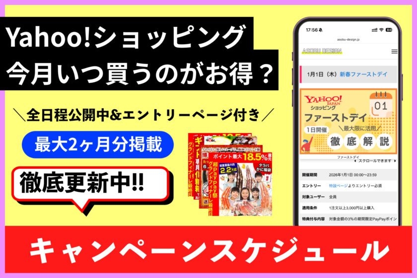 ヤフーショッピングは今月いつ買うのがお得?本記事では、2026年1月・2月に開催予定のヤフーショッピングのキャンペーン情報を開催日順に整理し、5のつく日やプレミアムな日曜日・爆買いWEEKなどお得な購入タイミングを詳しく解説します。