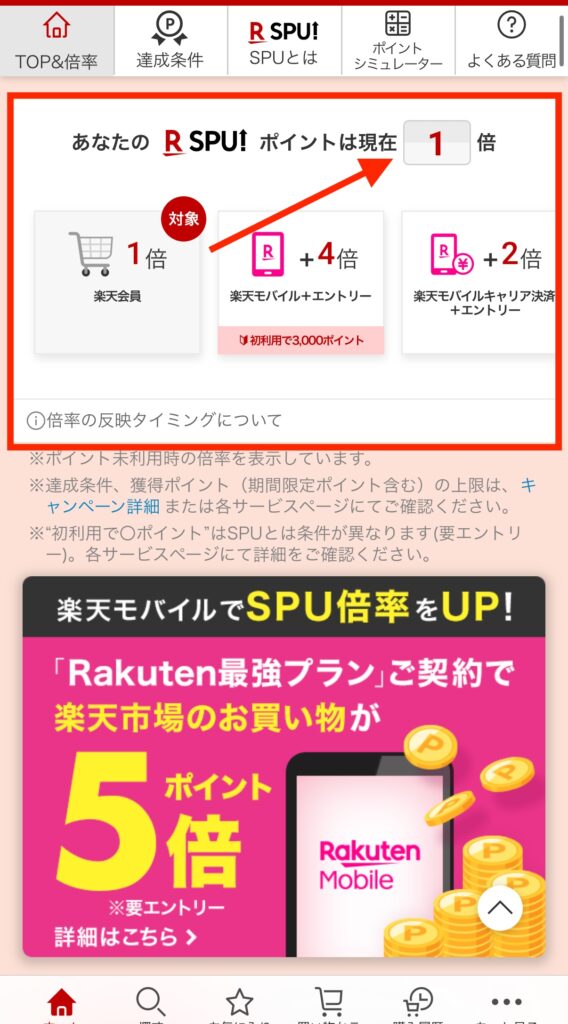 楽天ユーザーが条件を満たすとポイントアップする制度