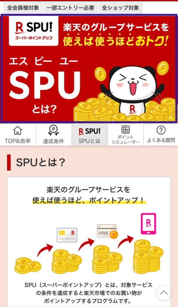 SPUの対象はすべての楽天会員で、会員ランクや楽天カードの有無は関係ありません。ただし、ランクが高かったり楽天カードを持っていたりすると、ポイント付与率が優遇される場合があります。