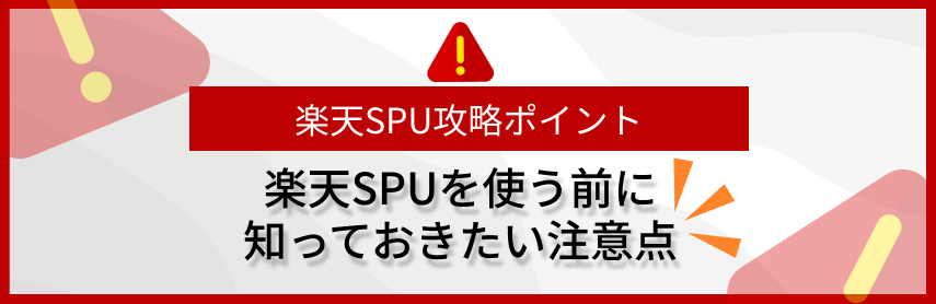 楽天のSPUは、複数のサービスを組み合わせてポイント還元率を高められる仕組みですが、利用にあたってはいくつか注意すべき点があります。