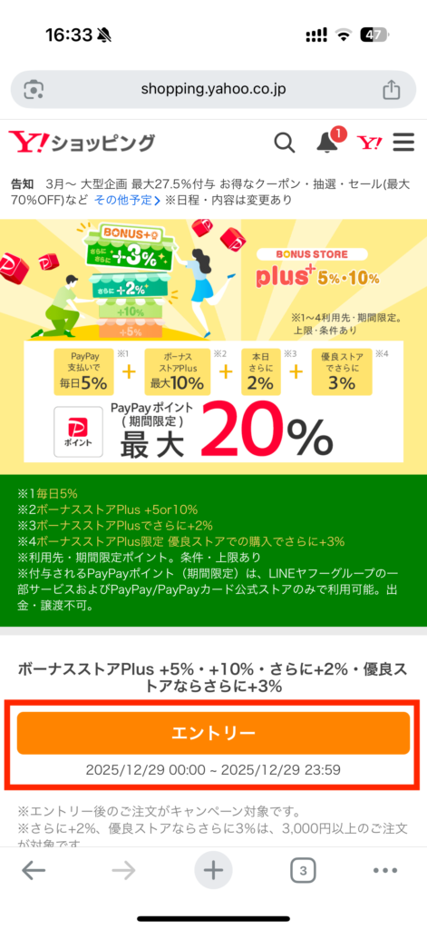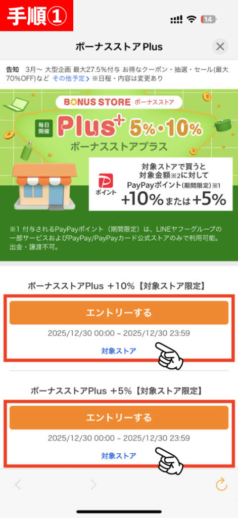 ボーナスストアPlusにエントリーする