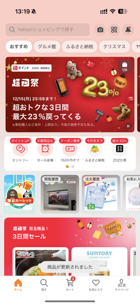 アプリ限定のキャンペーンやクーポンが不定期に開催されるため、アプリをインストールしていることで得られる特典が増えます。特に「5のつく日」などのキャンペーンでは、アプリを使うことでポイント還元が増える場合があります。