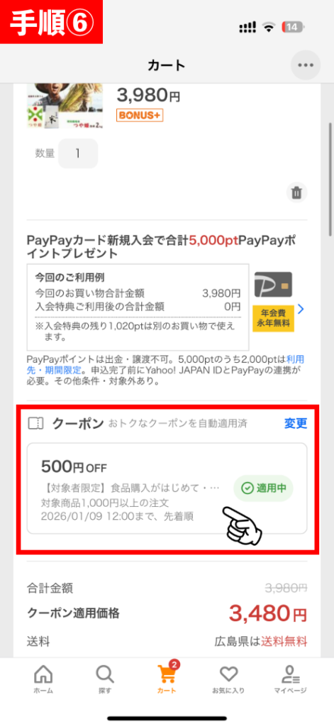 ボーナスストアPlus増量キャンペーンの特典適用条件として税込3,000円以上購入することが前提となっていますのでキャンペーンと併用する場合は3,000円以上購入するようにしましょう。また、始めてのご利用・1年以上ヤフーショッピングをご利用していないユーザーの場合は半額クーポンが利用できますのでここからクーポンを取得してご利用することをお勧めいたします。